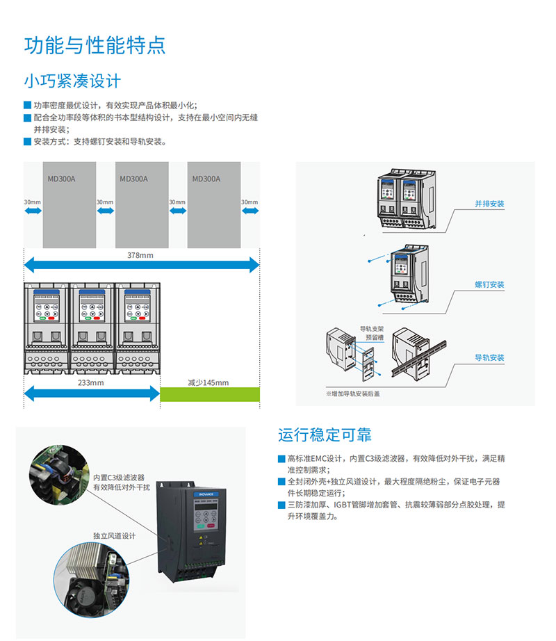 內(nèi)置 C3 級濾波器,有效降低對外干擾,滿足精準控制需求